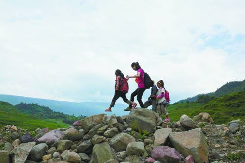 许多孩子上学途中都要经过一座有30年历史、长满锈斑的铁索桥。对孩子们来说,在每天往返学校接近两个小时的曲折山路里,走这座铁索桥成了最轻松的一件事情,因为至少没有大石头突然从山上掉下来,也不会被一些长刺的植物划伤,更不会跌倒。