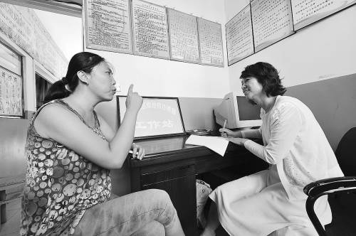 8月1日,在宁夏回族自治区石嘴山市惠农区南街街道矿中社区内,社区网格管理员(右)在和前来咨询问题的居民谈心。从2011年起,石嘴山市推行城乡社区网格化管理,网格员中的30%为民警、社区干部,70%为老党员和志愿者。这种管理有利于当地政府部门及时了解动态,调解矛盾纠纷。新华社记者 彭昭之摄
