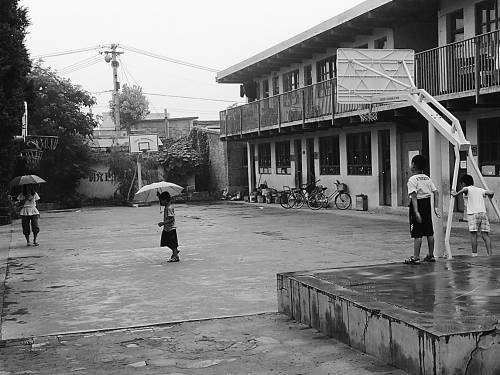 藤蔓掩映的校门,一幢两层小楼,4个篮球架“共用”的一块水泥篮球场。在中国的城市化大潮中,这所学校如此平凡。它位于北京著名的外来务工人员聚集地——皮村,现有658名学生中,656名为外地务工人员子女。