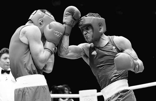 当地时间8月1日,英国选手(右)在伦敦奥运会男子拳击比赛中与乌克兰选手交锋。CFP供图