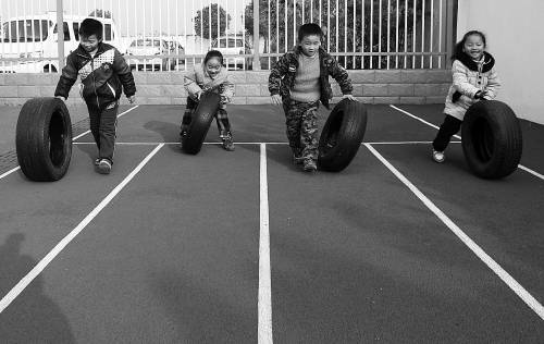 11月26日,合肥市庐阳区三十岗乡中心幼儿园,孩子们在做游戏。