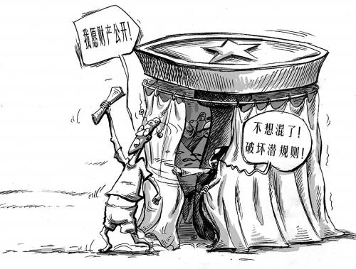 1月21日下午,广州市政协副秘书长范松青在政协分组讨论时称,自己只有一套72平方米的房子。“愿做财产申报公开第一人”的范松青会场遭同组委员质疑,有人说他“坏了官场潜规则”。(《新快报》1月22日)