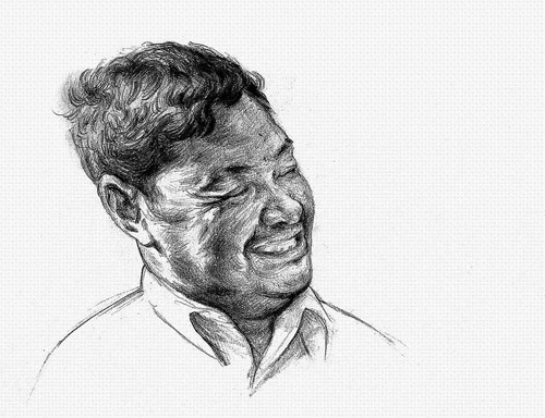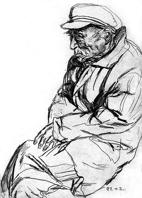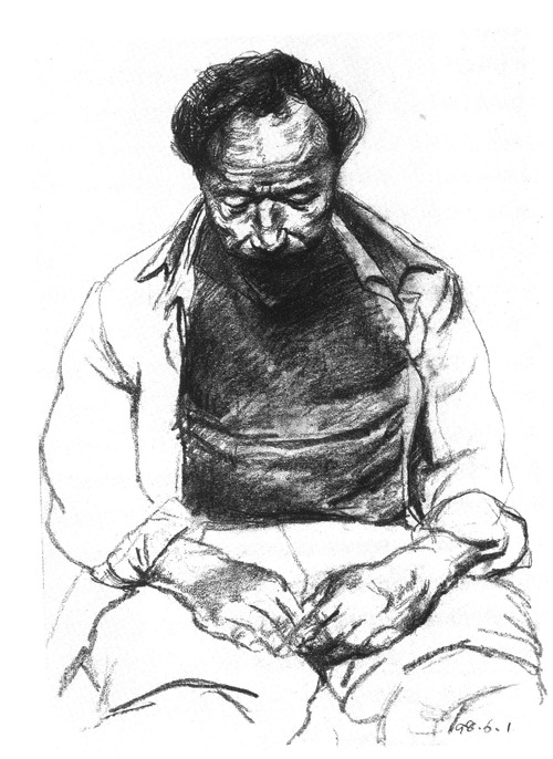 老童是画中人之一。和大多数被画对象一样,他没有全名。当在一大沓画纸中翻到老童时,谢宏军一下子就认了出来。