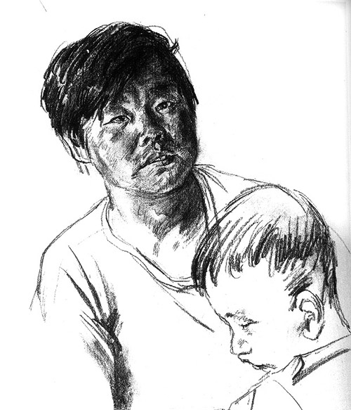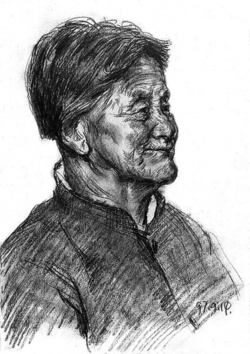 画这些人时,谢宏军心里最初的愿望其实很大:画出当代中国完整的农民肖像。从1997年到2000年,他画了素描速写1000多张。