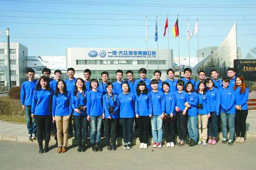 4月17日,大学生记者团走进一汽大众长春第二工厂。李庚伟摄