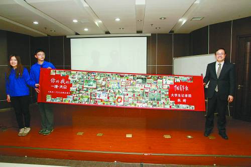 大学生记者团赠送#我和一汽大众晒合影#画卷。李庚伟摄