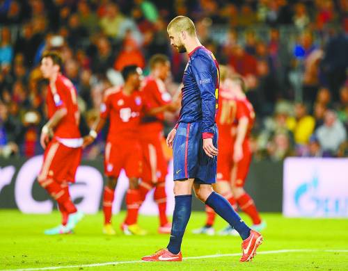 当梅西只能坐在替补席上成为看客的时候,面对强敌的巴塞罗那自然就进攻乏术——在北京时间今天凌晨结束的欧冠半决赛次回合较量中,回到诺坎普主场的巴萨以0∶3负于拜仁。两回合净输7球的结果,是冠军杯改制为欧冠联赛以来的半决赛最大比分差距,这也是巴萨俱乐部欧战历史上最惨痛的一次失利。