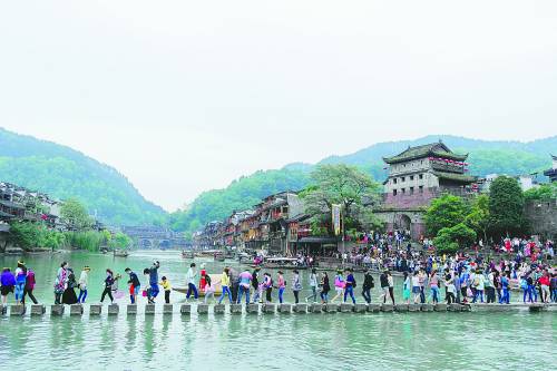“五一”小长假第二日,湖南凤凰古城游客数有所增长