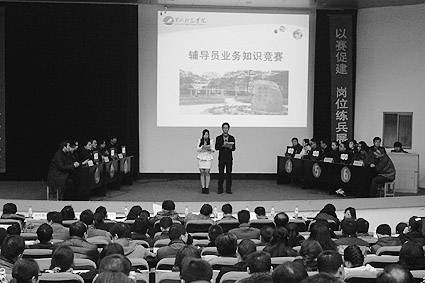 “蔡老师,这是我的预备党员考察鉴定表,您帮我指导一下。” “蔡导,这学期的大学生创新创业实践训练计划,我选择这个项目,您看行吗?” “栋哥,我的选修课还可以再重新选一下吗?” …… 黄河科技学院工学院辅导员办公室,办公桌上整整齐齐摆满各种学生材料,辅导员蔡冬栋还不时要接待前来咨询的学生。面对学生们提出的形形色色的问题,他耐心解释、认真回答。“我已经习惯了,每天都要解决学生思想、心理、学习和生活各方面的问题,这就是我们辅导员的工作。我们的办公室都是开放式的,这便于学生随时与我们沟通。”蔡冬栋笑着说。 近年来,黄河科技学院以“让学生从容面对未来”为工作目标,不断夯实大学生思想政治教育的组织基础,完善“工作有平台、发展有方向、学科有归属、专业有依托”的辅导员建设长效机制,打造了一支政治素质过硬、工作作风优良的职业化、专业化辅导员队伍,践行着“办一所对学生最负责任”大学的庄严承诺。 为学生传递正能量 辅导员——学生的“人生导师”,是帮助当代大学生树立坚定的政治理想和高尚的道德品质,树立对祖国、对人民具有高度的责任感和事业心的骨干力量。 黄河科技学院党委副书记赵会利说:“大学生日常思想政治教育工作是否有效,关键在于辅导员队伍。学校一直把辅导员队伍建设作为加强和改进大学生思想政治教育的重中之重。”目前,黄河科技学院共有专兼职辅导员144名,其中硕士以上学历达52%,师生配备比为1∶177,高于教育部1∶200的要求,在加强大学生思想政治教育、引导大学生全面发展、维护学校稳定等方面,发挥了不可替代的作用。 刚工作一年的蔡冬栋骄傲地告诉笔者:“做辅导员最幸福的事就是学生能把你当成朋友,通过心与心的沟通,帮助他们树立正确的世界观、人生观和价值观。” 告别高中初到大学,面对全新的学习生活环境,大部分新生都会产生诸多的不适应,加强思想政治教育成为摆在辅导员面前的一项重要任务。 新生军训期间,辅导员作为军训教官全程跟随,通过同训练、共生活、谈理想、聊心情,拉近师生距离,并利用QQ、飞信、微博等与新生充分沟通,营造一种既是师生更是朋友的氛围,随时了解学生的思想动态。利用座谈会、主题班会、团日活动等,围绕国家时政动态、社会热点、学校工作,开展思想政治教育。 育人为本,德育为先。“以党校与校卫队为抓手,全面加强思想政治工作”的德育模式是黄河科技学院思想政治教育工作的一大创新。辅导员将新生的入党教育同入校教育、思想教育、军训教育紧密结合,充分发挥党校的教育主阵地作用和校卫队的实践平台作用,激发广大学生积极追求政治进步的热忱,每年新生军训结束后都有90%以上的学生提出入党申请。 在刚刚结束的2013年度全省高校宣传思想工作会议上,黄河科技学院党委书记丁松林在介绍学校思想政治工作经验时说:“2008年以来,我校共发展学生党员5809名,截至2012年底,在校学生党员比例达10.27%,在学生中形成了积极靠拢党组织、追求政治进步的良好思想氛围。” “我是谁?我要去哪里?我该怎么去?这是从大一到大四,贯穿学生职业生涯规划始终的一条主线。”主攻就业指导、获得全球职业规划师培训认证的刘伟说,作为辅导员,我的主要工作就是要帮学生回答并解决这些问题。 新生入校伊始,黄河科技学院的辅导员就对学生进行职业生涯规划教育,从社会岗位需求、工作性质到大学期间的学习方向进行详细解析。充分利用学生职业生涯规划手册,通过职业测评,让学生对自己的兴趣、性格、能力、价值观等有全面的了解,结合升学、就业、创业三大方向,引导学生主动设立大学期间的职业规划目标,初步确立职业方向。辅导员为每位学生建立职业规划小档案,对班级进行职业规划分析,及时督促学生修订年度奋斗目标,完善职业生涯订制,让学生进一步明确自己的职业目标。在目标的推进过程中,辅导员适时关注与督导,针对每个学生的具体情况提建设性的意见,让目标在推进中愈加清晰。 谈起职业生涯规划带给学生的益处,体育学院辅导员孙建鹏的脸上洋溢着幸福,因为他所带的2011届体育教育专业61名毕业生中,考取研究生30人,特岗教师9人,招教7人,公务员1人,自主创业3人,成为全校职业生涯规划的典型案例。 孙建鹏常给学生说的一句话:“当你们遇到麻烦,感到困惑时,能够想起还有我这个辅导员在你们身边,这才是我的成功。” 陪伴学生健康快乐成长 2号楼412宿舍,楼管会干部佳睿正在指导大家整理内务,“被子这样叠才能叠成豆腐块,枕头放在这边会好一些……”她和同学们有说有笑、相处得很是融洽。让大家想不到的是,这样一个受大家欢迎的女孩,一年前竟会因为和室友处理不好关系而要求退学。 “作为辅导员,我最期盼的是学生健康、快乐的成长!”从事辅导员工作12年、拥有国家二级心理咨询师资格证书的张丽丽老师如是说。 学习困惑、就业压力、情感问题、人际关系敏感等是当代大学生普遍存在的问题,如果辅导员仍惯用以往说教的方式显然落伍了。黄河科技学院的辅导员通过心理学专业知识的学习,将心理咨询中“真诚倾听,双向沟通”的理念用于班级管理,把“辅导员说,学生听,照着做”转化成“学生说,我来听,在‘真诚倾听’的同时有‘共情’”。辅导员设身处地理解