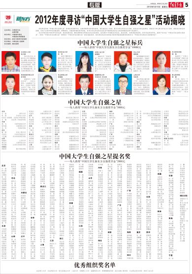 2012年度寻访“中国大学生自强之星”活动揭晓