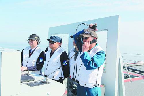 本报辽宁舰6月19日电(王辉 李唐)今年首次出海进行科研试验和训练的我国首艘航母辽宁舰,今天在渤海某海域进行了歼-15舰载战斗机多批次起降飞行训练。这是继去年11月我舰载战斗机首次成功在辽宁舰着舰起飞后,再次进行起降训练,表明我国已经掌握了舰载战斗机在航母上的起降技术。 上午8时许,第一架飞临的歼-15舰载战斗机对准辽宁舰甲板跑道,并建立着舰航线,在指挥塔台现场指挥员和LSO指挥员的指挥下,飞行员降低飞行高度,调整好姿态,在完成一连串干净利落的动作后,触舰、挂索,飞机稳稳地停在航母甲板上。紧接着,在舰上完成加油、充气、供电等一系列起飞前的准备工作后,飞行员操纵战机滑跃起飞,呼啸着冲上海天。随后,又有多名飞行员相继驾驶歼-15舰载战斗机,顺利完成了在辽宁舰上的阻拦着舰和滑跃起飞。辽宁舰自6月9日出海以来,已先后进行了舰机适配性试验、舰载机飞行指挥与保障作业流程训练、舰载机着舰技术恢复性训练等多项科研试验和训练内容,为歼-15舰载战斗机在航母甲板上顺利起降奠定了坚实基础。 据悉,在这次海试任务中,歼-15舰载战斗机还将首次在辽宁舰上进行驻舰飞行训练。 |