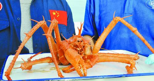 这是“蛟龙”号载人潜水器在南海一冷泉区采集到的蜘蛛蟹(6月19日摄)。当日,正在南海执行首个试验性应用航次的“蛟龙”号载人潜水器搭载香港浸会大学副教授邱建文下潜,潜水器采集到了蜘蛛蟹和冷珊瑚等珍贵海底样本。