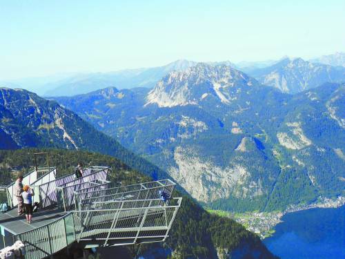 和同伴乘缆车登上达赫施泰因山,透过缆车舷窗,只见森林郁郁葱葱,宝蓝色的湖泊点缀其间,在一座座耸起的山台间,村庄星罗棋布;随着海拔逐渐上升,植被也开始变得低矮,灰白色的石灰石山体鳞次栉比,巍峨耸峙,在阳光的照耀下闪闪发光。