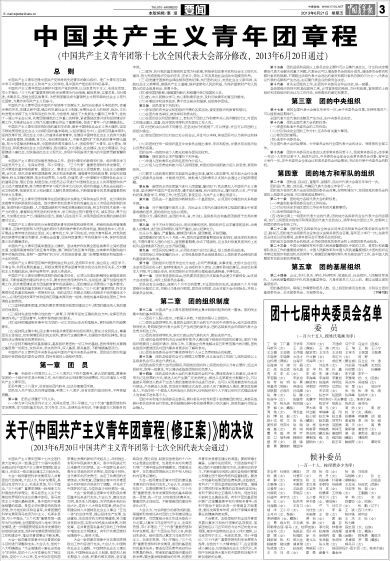 关于《中国共产主义青年团章程(修正案)》的决议