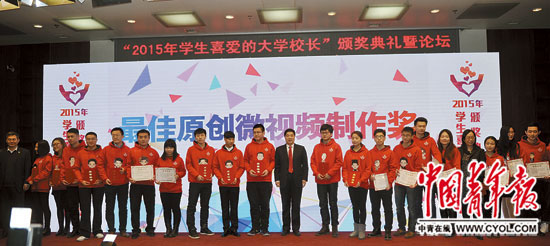 在这次颁奖典礼上,很多学生都是第一次登上这样高规格的舞台,第一次向校长“表白”,第一次给大学校长颁奖……活动之后,更有数十万名大学生在网上参加了为校长献玫瑰的活动。