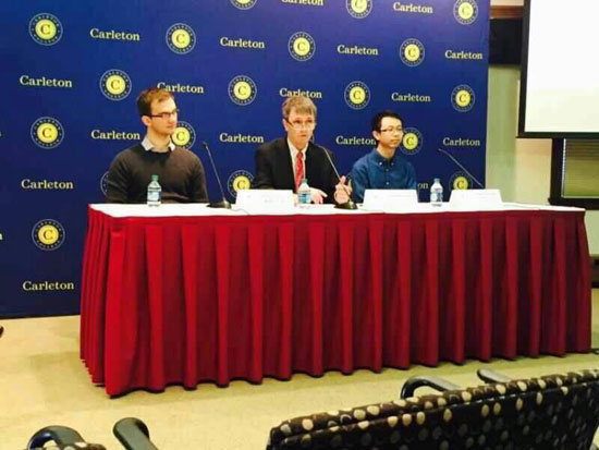 在美国科研人员举行的发现引力波新闻发布会次日,罗家伦作为发现引力波团队的成员之一和论文合作作者之一,与团队负责人Nelson Christensen教授一起亮相卡尔顿学院当地的新闻发布会,接受了当地媒体的采访。