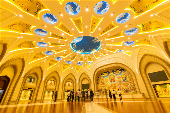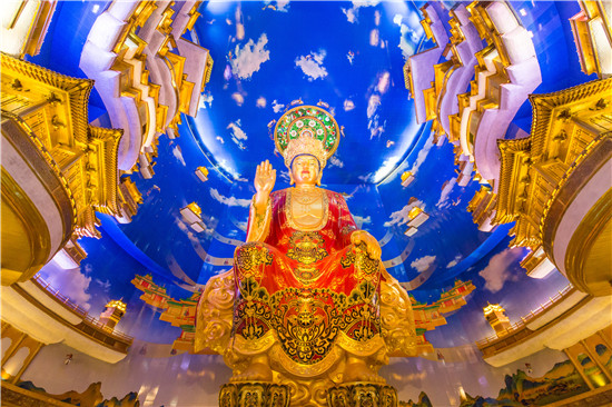 潘建国介绍说,兜率天宫内的佛菩萨罗汉造像,也体现了当代中国佛教造像艺术的最高水准。所有造像艺术家,都具备国家级工艺美术大师资质;而在佛像造型的设计上,也充分体现了当今社会的审美。