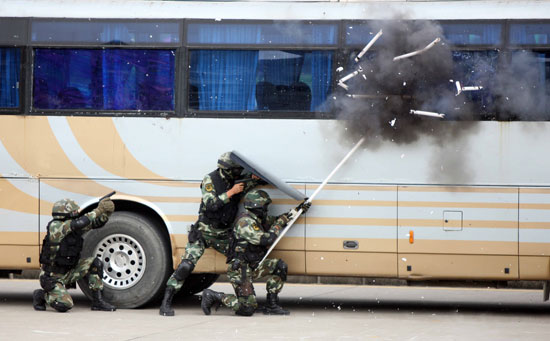 武警黑龙江总队组织反恐处突演练。