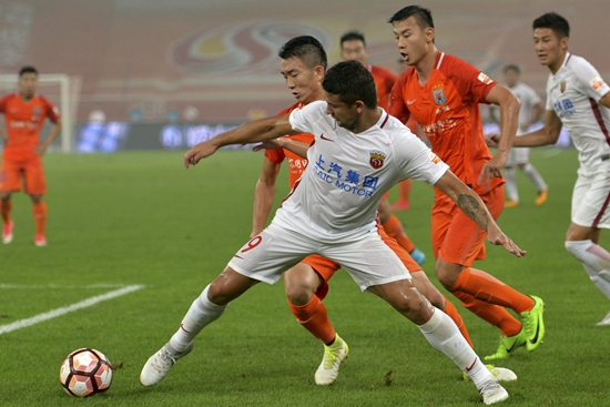 7月30日,中超第19轮比赛中,山东鲁能以2∶1战胜上海上港,上港遭逆转痛失登顶良机。视觉中国供图