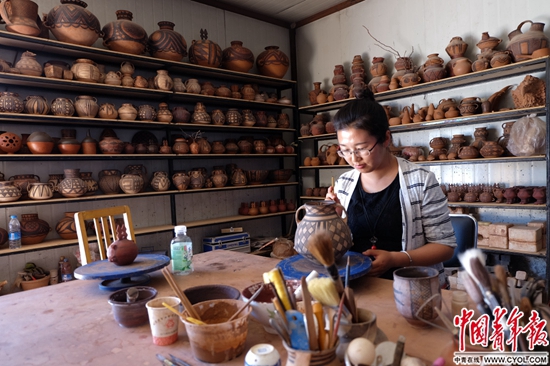 李娜上大学时就喜欢陶艺,虽然是雕塑班的学生,但隔壁陶艺班的毕业答辩,她从头听到尾,大三时,还和同学专程到景德镇学习了一个月。听说家乡玉门有专门做彩陶的地方,李娜一毕业后就风尘仆仆地回来了。