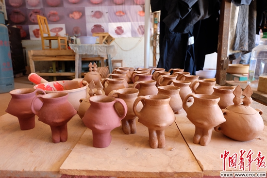 “每天上班第一件事就是搞卫生。西北的灰本来就大,我们做陶器,要选土,灰就更大。如果隔壁那间车库的泥土粉碎机一开,这间屋子也得尘满面。”采访李娜前,她说先要收拾收拾,但踏进研制中心(其实更像工厂车间)的门,中国青年报·中青在线记者也没看出她收拾了哪里:澄泥池里盛着没用完的泥,盆里装着土,地上、工作台上、凳子上……屋里到处都是土。陶器的制作过程决定了这是一份土与青春一起飞扬的事业。