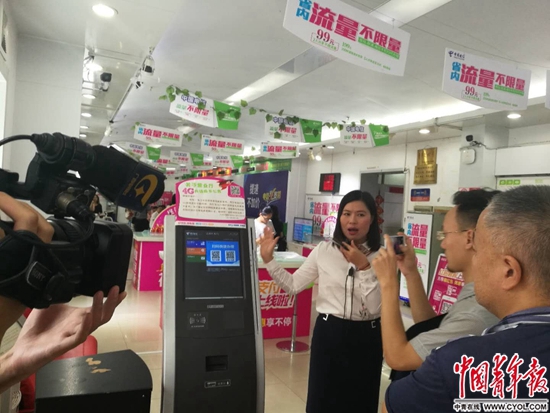 中国电信广西公司一位小CEO在给媒体讲解当地营业厅的日常工作。中国青年报·中青在线记者 潘圆/摄