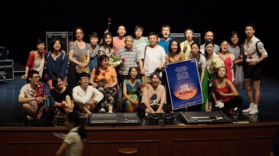 由20个普通北京人出演的中法合作现代舞《精彩必将继续》在蓬蒿剧场上演。图为演职人员合影留念。王翔/供图