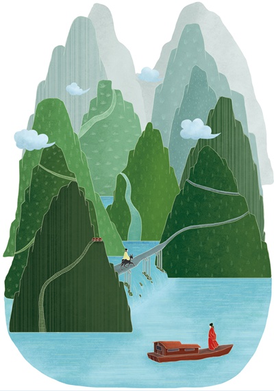当年范成大结束四川的任期后,要返回他的故乡苏州。这段漫长的归程他选择的是水路,或许是因为这美景让他流连忘返。漫画:程璨