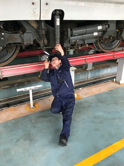 日常工作中,一列动车组由4人组成的作业组负责日常检查,而一列动车组有16个转向架以及裙板、跨接电缆等,他们需要一直保持高强度的检查作业。在春运高峰期间,为了保证动车组安全准时上线,每个作业小组需要在夜间检修6组动车组左右,人均步行3万步以上。