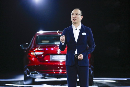 在第十代雅阁上市发布会的现场,广汽本田执行副总经理郑衡介绍第十代雅阁年轻化变革背后的市场逻辑。资料图片