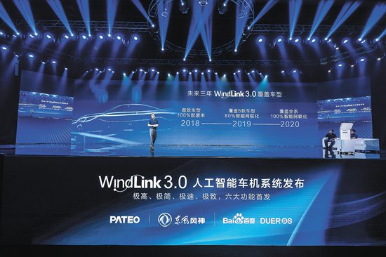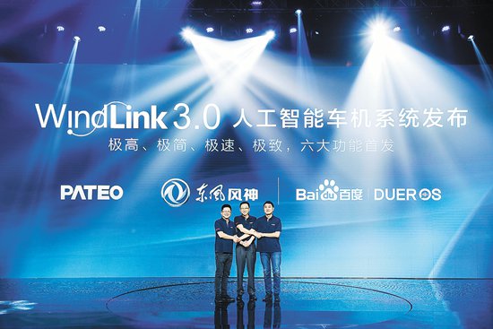 这次的东风品牌战略发布会上,“百度DuerOS赋能的AI车机系统——东风风神WindLink3.0”同台发布。这是东风乘用车公司紧跟品质、智慧、和悦品牌战略,站在新起点的开端,秉承共生、共融的互联网精神,与百度、博泰携手在汽车、互联网、人工智能三大领域跨界合作开发的进阶成果。