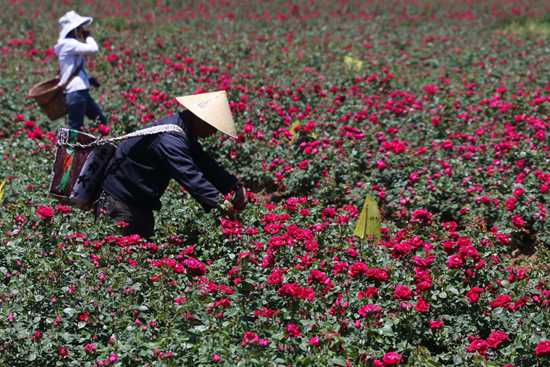 为保障鲜花食品的安全,玫瑰花不打任何农药,使用的是有机肥料,杂草由工人们用手一棵棵拔出。玫瑰花花期约15天,被摘下的花朵进行真空包装后直接送进冷库,作为食用玫瑰产品的储备原料。