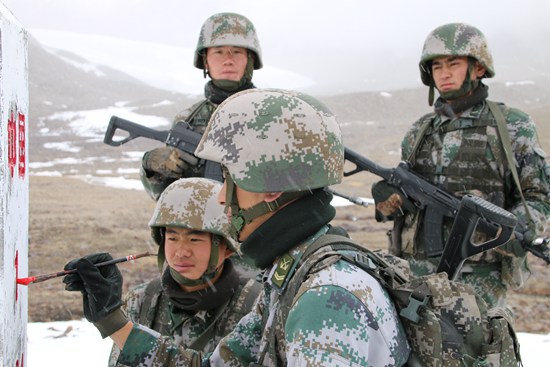经过5个小时的艰难跋涉,官兵们到达中阿边境1号界碑。笔者看到,大家按照夏指导员的分工忙碌起来,有的清理杂物,有的擦拭界碑,上士樊强和新兵王康磊负责为界碑描红,这也是他们每次巡逻必须完成的工作。樊强在这个边防连服役了12年,今年年底就要退伍。他一边描红,一边对着旁边的王康磊说:“等我退役了,戍守祖国的边防线、为界碑描红的任务就交给你了!”王康磊回答说:“班长,放心吧,我一定不会让您失望的!”