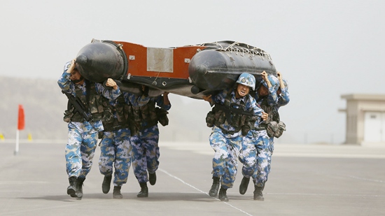 轻武器分解结合、指挥所通信架设、抬橡皮舟接力……吉布提当地时间7月2日上午,我驻吉布提保障基地营区内,百余名官兵正在进行各种课目的比武。图为官兵参加抬橡皮舟接力课目的比武。据悉,该保障基地此次群众性练兵比武活动历时1个多月,通过全员参与、全程比练、全程监察的群众性练兵比武活动,激发了官兵练兵动力,进一步强化了官兵履职尽责能力。张庆宝/文 檀龙龙/摄