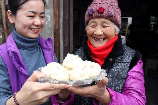 12月25日,江苏省苏州市姑苏区金阊街道阊门社区组织辖区居民开展“卡通馒头迎新年 金猪送福暖人心”活动。社区居民欢聚一堂,制作卡通猪馒头。志愿者还将蒸好的馒头送给社区空巢老人品尝,迎接即将到来的新年。视觉中国供图