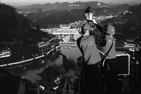 •     国网湖南电力党员服务队在凤凰古城检查电力设施
