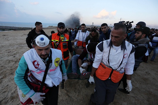 当地时间12月24日,在加沙,巴勒斯坦抗议者划小船出海,试图打破边境地区封锁,导致与以军发生冲突。视觉中国供图