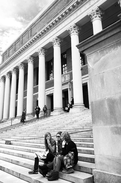 哈佛大学学生在该校图书馆前。视觉中国供图