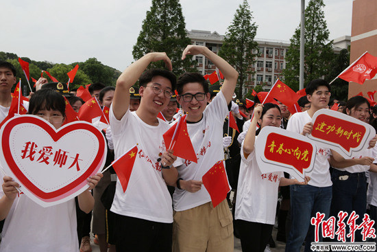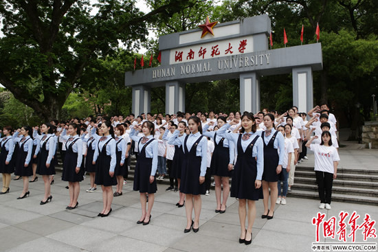 •     4月18日,湖南师范大学同学们进行主题宣誓,喊出“百年传承,今日到我;激荡未来,壮志在我;青春万岁,强国有我!”中国青年报·中青在线实习生 蒋浩田/摄