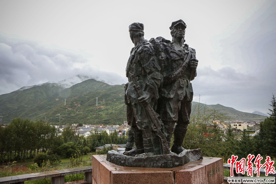 7月29日,四川省松潘县川主寺镇元宝山,红军长征纪念碑碑园内的雕塑《告别苏区》。中国青年报·中国青年网见习记者 孔斯琪/摄