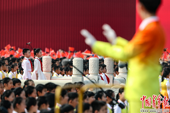 就在这时,清澈、纯真、未经丝毫修饰的童声从天安门广场国旗杆下徐徐传出: