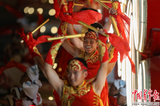 作为南表演台中一支主力演出队伍的一员,她要在舞台上表演90分钟。“我要在联欢中跳起来、笑起来!”黄跃卿说。