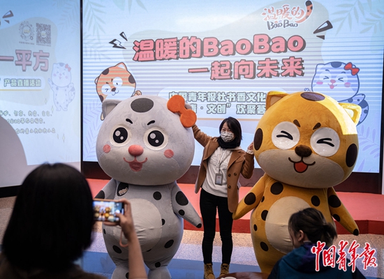 10月23日,“豹小花”还出现在位于前门的书香世业街区,未来在那里,中国青年报社将和首开文投联合打造青年书店,不断改革中的中国青年报社此次将以“媒体+书店+文创”的新业态,向中外青年讲好中国故事。同时,中国青年报社还将联合北京最美书店——更读书社,在为一代代年轻人输出过文化大餐的海运仓2号和中青大厦,打造属于年轻人的书店。现场播放的视频中,中国青年报社文化中心视频记者张诗童向青年朋友发出邀约:“欢迎到被中青报‘温暖一平方’赋能的书店打卡”。