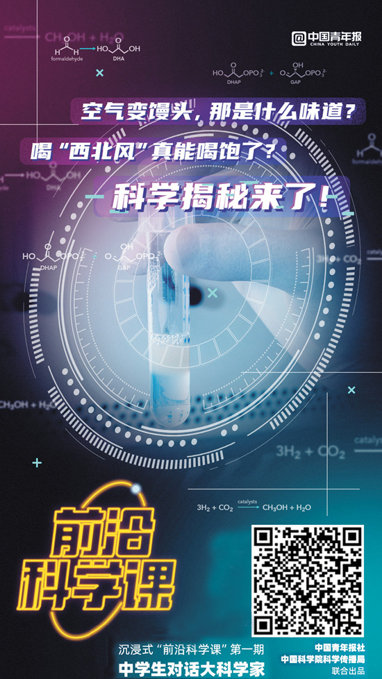 11月23日,由中国青年报社、中国科学院科学传播局联合出品的沉浸式“前沿科学课”对外发布,第一期聚焦的主题是“中国首次实现人工合成淀粉”。在节目里,中学生走进“人工合成淀粉”这一重大科学发现的“现场”,和科学家面对面,触摸人类最前沿的科学发现。人工合成淀粉,是重大进展还是“水变汽油”?既然“空气可以变馒头”,那么,喝“西北风”真能喝饱吗?