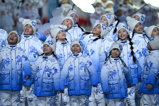 2022年2月4日,冬奥会的圣火在鸟巢点燃,合唱团唱响本届冬奥会主题歌《雪花》。