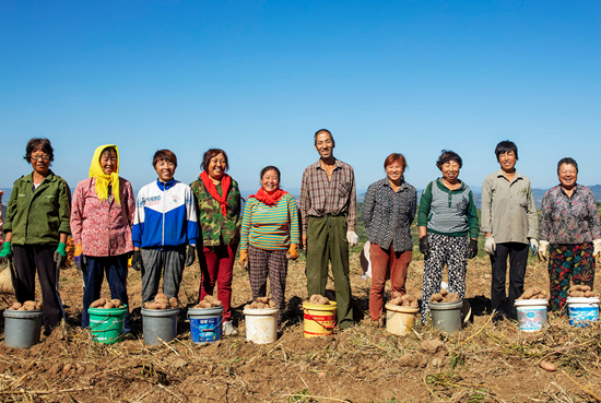 山西省阳泉市平定县岔口乡西头岭村宏丰农业专业合作社的农民。这里带动周边8个村300余户贫困户增收致富,该产业户均增收1000元以上。平定县供图