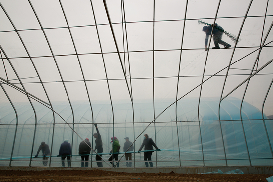 宁夏回族自治区隆德县神林乡神林村,工人们正在搭建种植拱棚。近年来,隆德县全力打造冷凉蔬菜种植产业带,使冷凉蔬菜成为当地群众增收致富的主导产业。隆德县供图