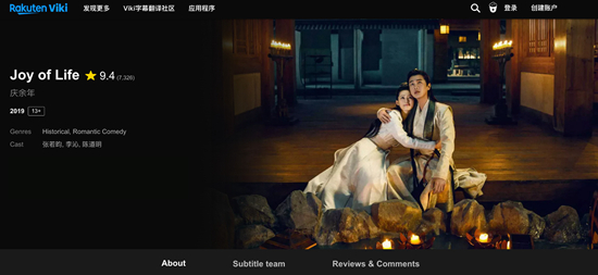 《庆余年》英文版《Joy of Life》,海外发行涵盖五大洲多个新媒体平台和电视台,创下高收视率的同时也斩获千万海外粉丝。 网站截图