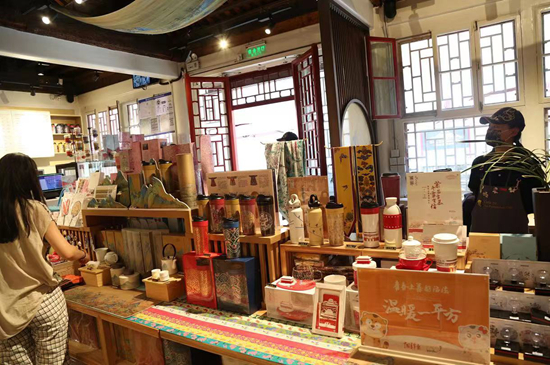 故宫角楼咖啡文创作品吸引游客驻足。 黄子轩/摄