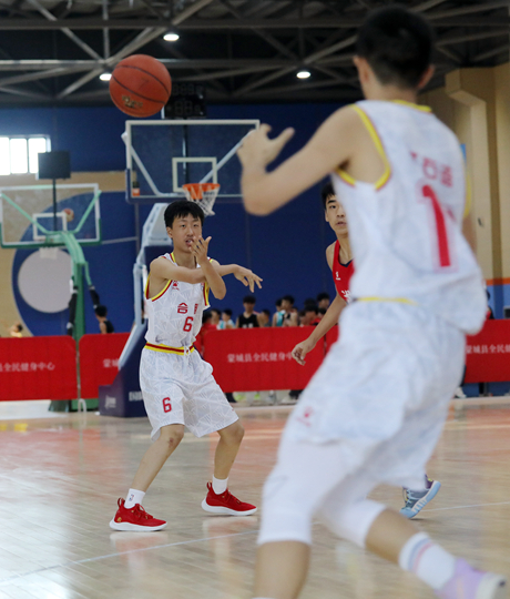 6月25日,安徽亳州,参加2022年安徽省青少年篮球(乙组)锦标赛的青少年运动员在紧张地进行比赛。视觉中国供图